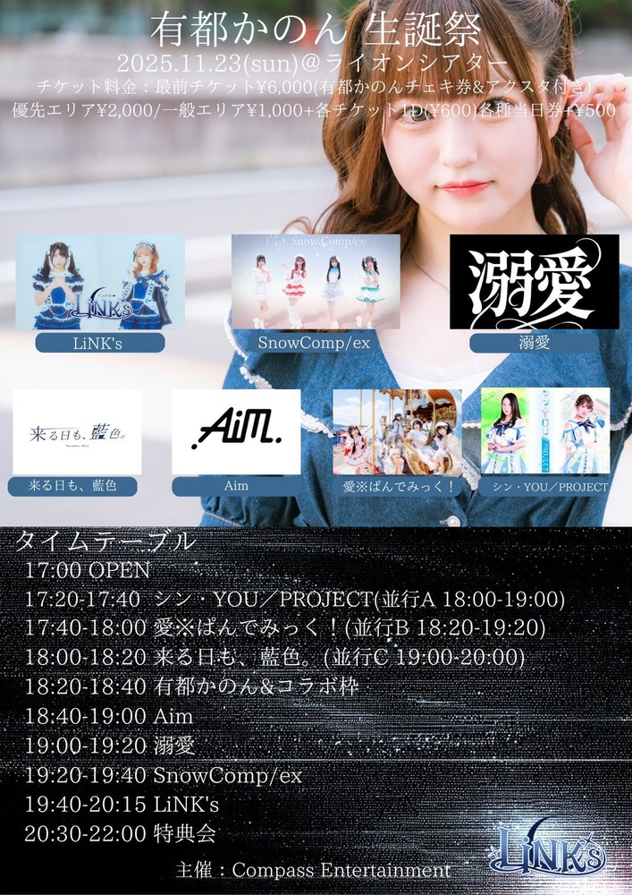 17:20〜17:40 リンカ (並行2階 HIDEYOSHI 17:50〜18:50)