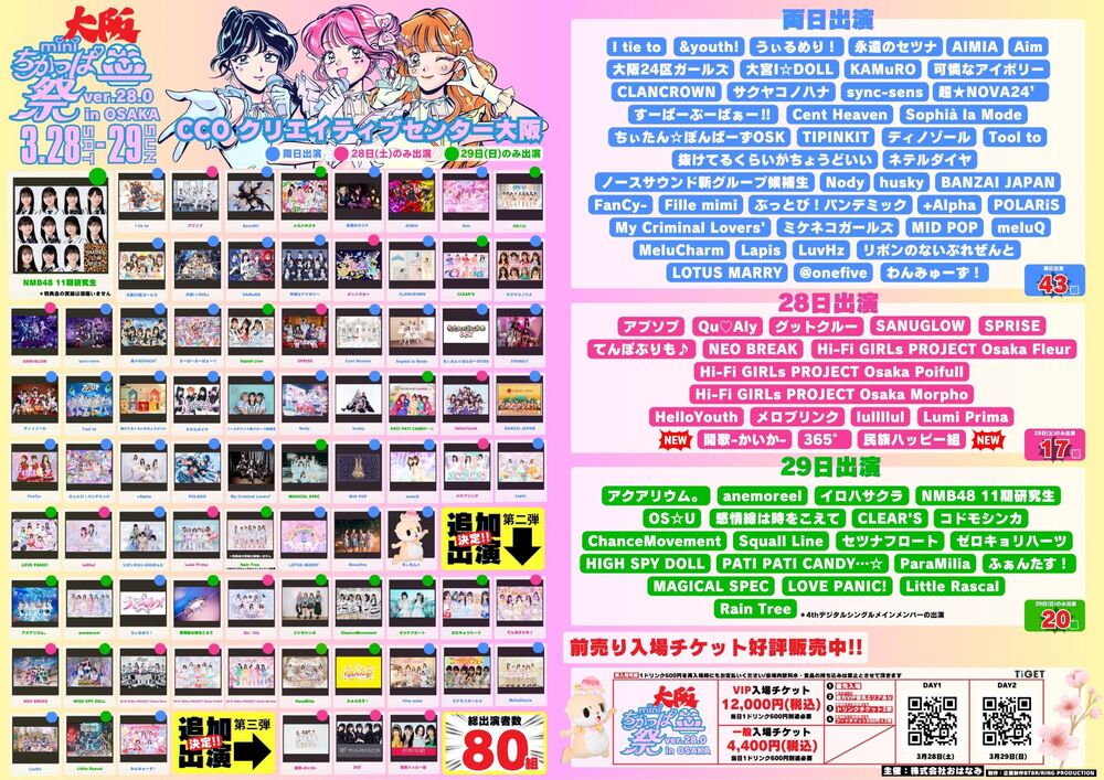 優先 2,400円 / 一般 1,400円 / 当日 +500円 (各1D別)