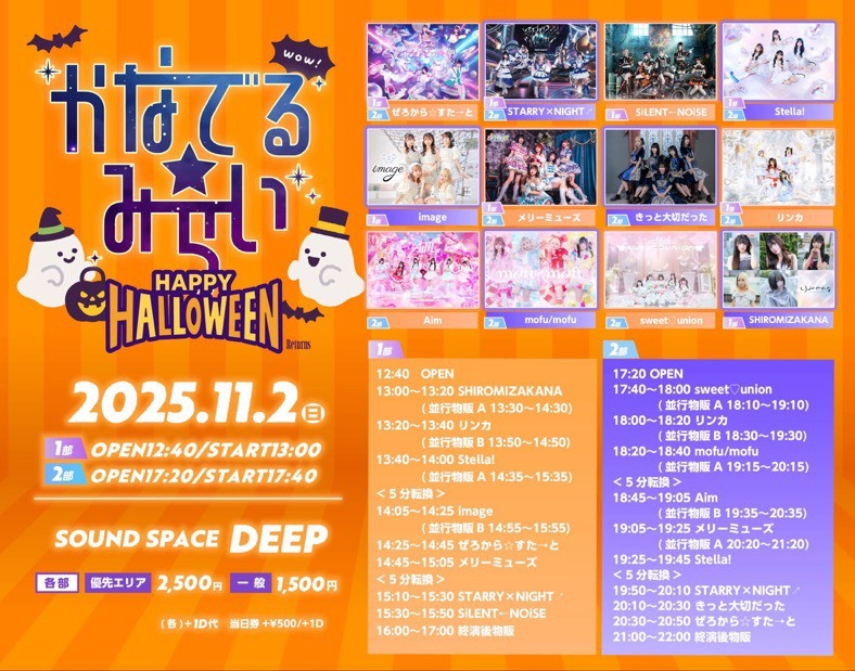AimがSOUND SPACE DEEPで開催される「かなでる☆みらい HAPPY HALLOWEEN Returns」に出演いたします!