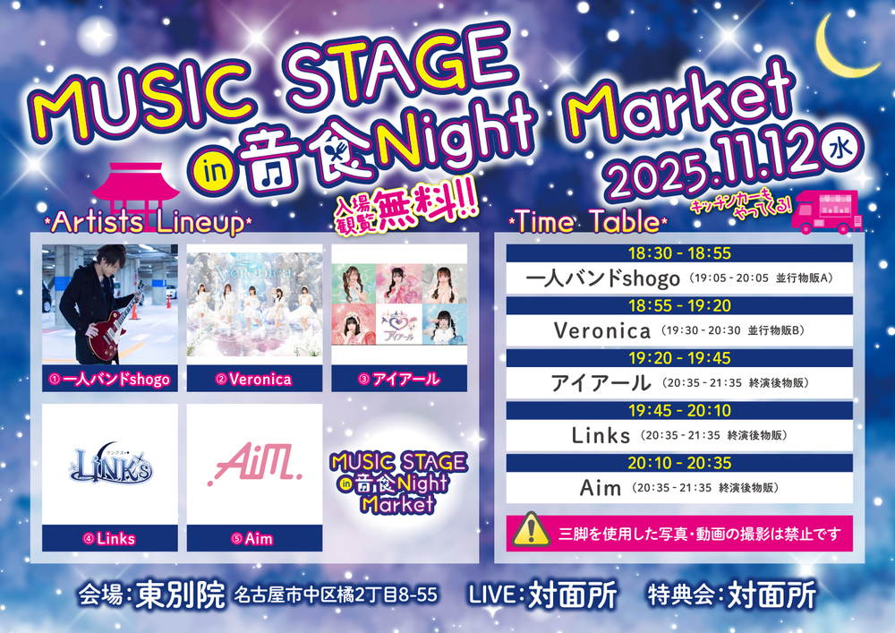 〇11月12日(水)「MUSIC STAGE in 音食Night Market」出演!