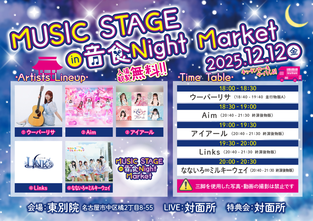 12月12日(金)入場無料!「東別院音食Night Market」出演!
