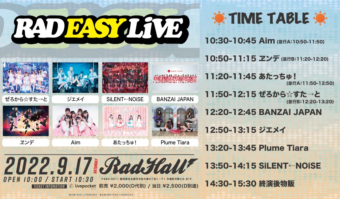 【9/17】RAD EASY LIVEのタイムテーブルが公開されました!追ってスケジュールに掲載致します。
